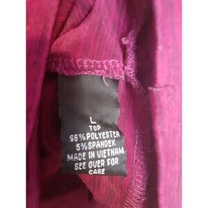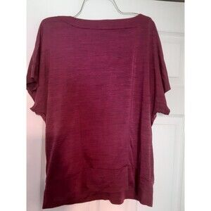 AB Studio Blouse Top Large L Bead V-Neck Short Sleeve Raspberry Red Knit Stretch