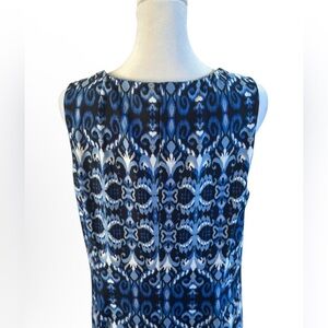 Beautiful AB Studio dress featuring a striking blue and white baroque-inspired print. Designed in a sleeveless shift silhouette with a scoop neckline and a flowy, relaxed fit. Lightweight and versatile — perfect for summer wear, office layering, or pairing with sandals for a casual day out.