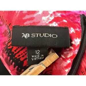 AB Studio Bold Pink Diamond Sheath Dress Size 12 Retro Style Sleeveless Geometri