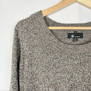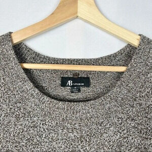 AB Studio Brown Knit Pullover Round Neck 3/4 Sleeve Sweater M