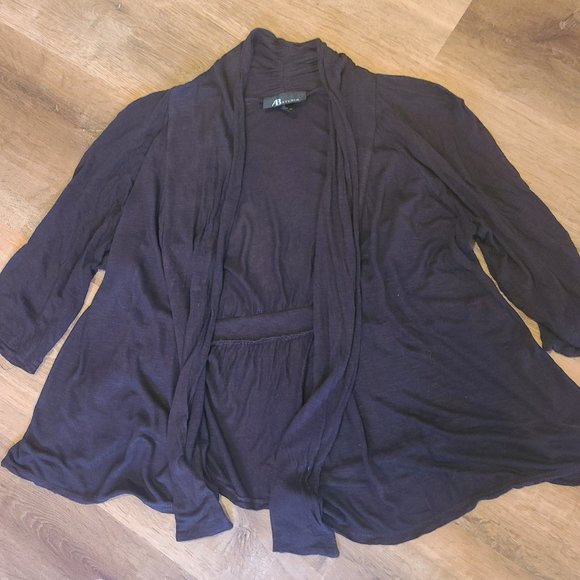 AB Studio Cardigan, dark brown in color. This is a really cute, light weight cardigan that's comfortable and soft.