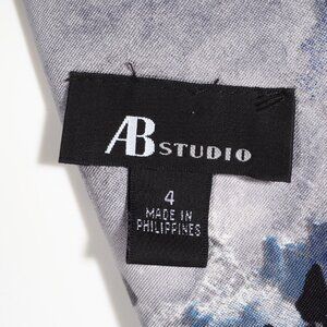 AB Studio Dress Womens Size 4 Abstract Floral Print Blue Black White Sleeveless