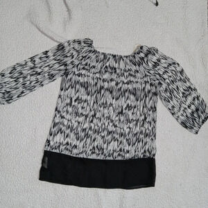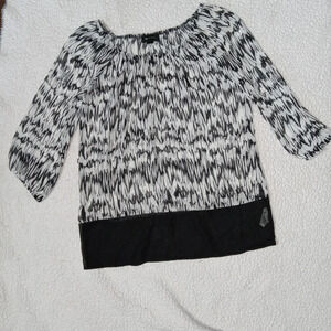 AB Studio EUC Black & White Sheer 3/4 Sleeve Top size small