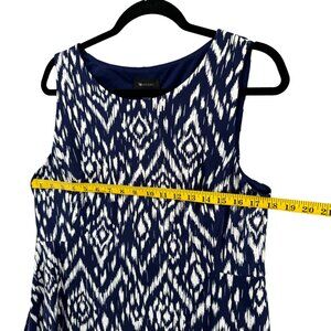 AB Studio Ikat Mini Dress Blue White Sleeveless Lined Stretch Pullover Size L