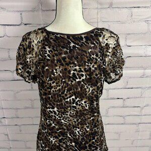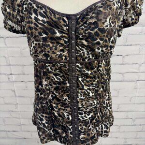🐆 AB Studio Leopard Print Mesh Corset-Style Top – Size XL