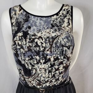 AB Studio Lined Sleeveless Mesh Bodice Zipper Back Belted Dress Size 10