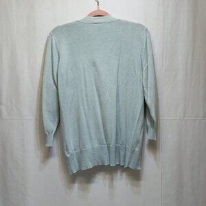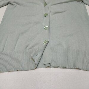 AB Studio Mint V-Neck Cardigan Medium 100% Cotton Lightweight Knit Style 0420M7M