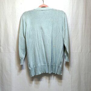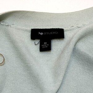 AB Studio Mint V-Neck Cardigan Medium 100% Cotton Lightweight Knit Style 0420M7M