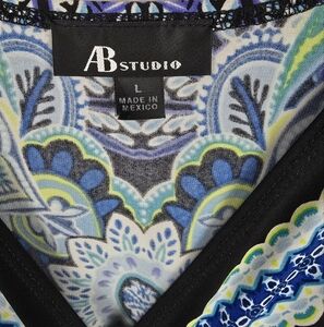 AB Studio Multicolor Floral Pattern Short Sleeve Dress Sz L