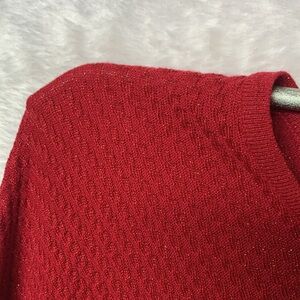 Stylish red knit sweater with a textured design. Perfect for casual wear.