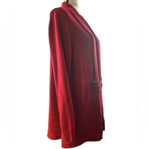 Stylish red knit sweater. Ideal for any occasion. Can’t be worn over short or long sleeves. Very versatile. Please see pictures for measurements. May have some slight pilling.