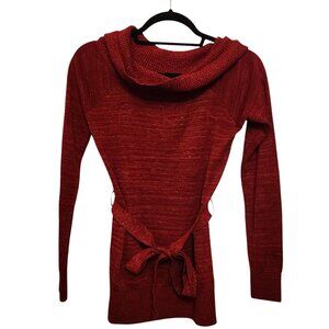 AB Studio Red Metallic Knit Cowl Neck Sweater Top Size Small
