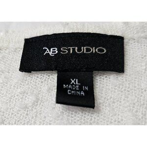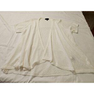 AB Studio Short Sleeve Open Front White Textured Knit Cardigan Sz XL Career Ofc
