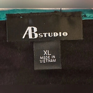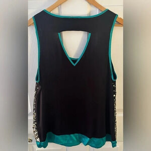 AB Studio Sleeveless Top Black w Gold Sequence and Green Silk like Trim Size XL