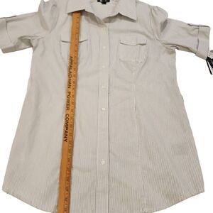 AB Studio Striped Button Front Blouse Woven Watch Pattern Women's Size XL Cotton