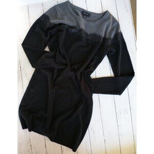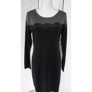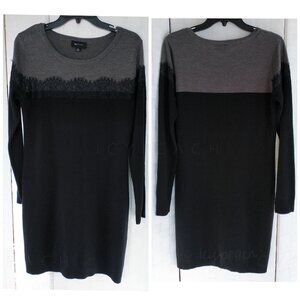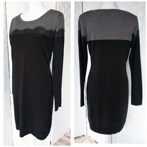 AB Studio Sweater Dress Size Medium Black Gray Colorblock Lace Trim Minimalist