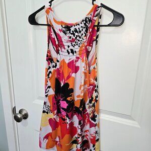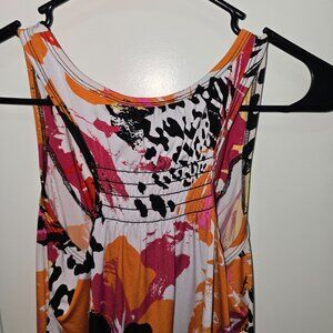AB Studio Tank Top Orange Black White Pink Splatter Floral Size Medium Shirred