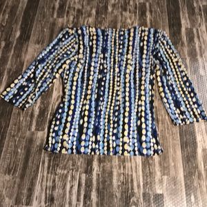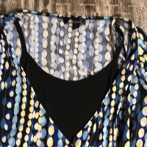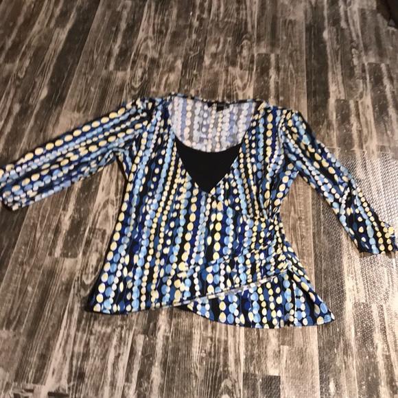 AB Studio Top with faux wrap front and attached tank top. 3/4 sleeve. 100% polyester. Excellent condition.