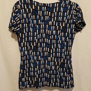 Chic faux wrap top with geometric pattern.