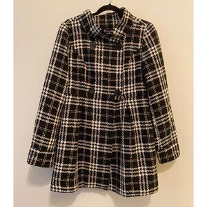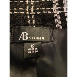 AB Studio Womens Black & White Plaid Double-Breasted Coat Size 12