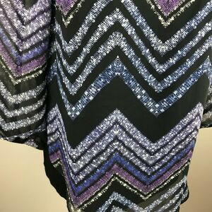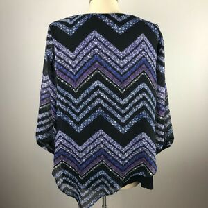 AB Studio Womens M Blouse Black Blue Chevron Stripe 3/4 Sleeve Polyester