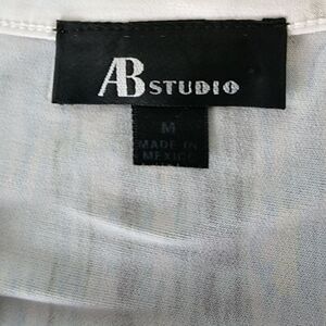 AB Studio women's top. Size medium. Short sleeve. Ruffle front. Lined. 100% polyester. Like new. No tears or stains.