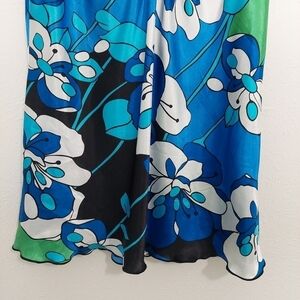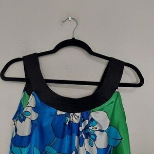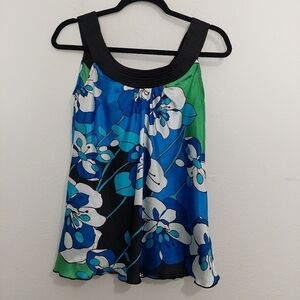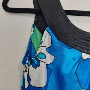 AB Studio Women's Silky Blue Floral Sleeveless Round Neck Blouse Top Size Small
