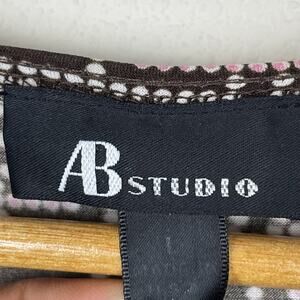 AB Studio Y2K Geometric Print Top Size L Brown 3/4 Sleeve Stretch Made in USA