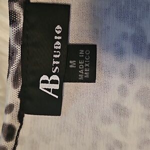This versatile blouse is great for multiple occasions.  The black, gray, and white print can go dressy or casual.  This top has a scoop neck, cap sleeves, and horizontal ruffles across the bust.  This top has a white body lining.  Measurements and the material content tags are pictured in the listing.