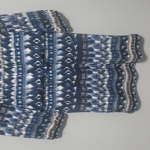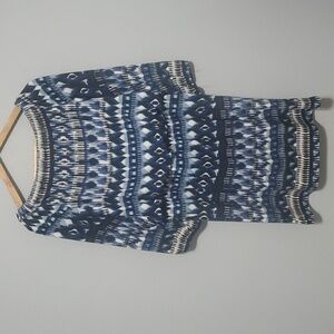 AB Studio geometric dress women's size large blue black white cream abstract print elastic waist