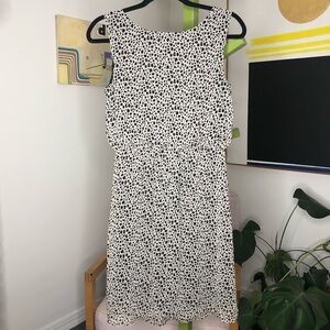 AB Studio chiffon mini dress with elastic waist and flouncy self bow on front. Fully lined. Cream and black. Size small. Dress pulls on over head, no zippers. EUC.