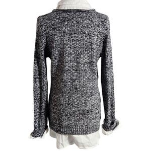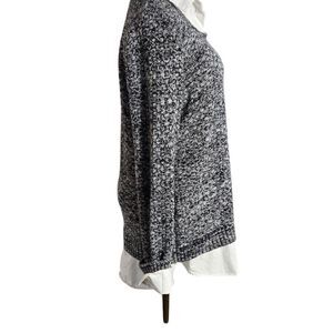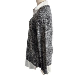 AB Studio Black and White Sweater Button Down Twofer Shirt