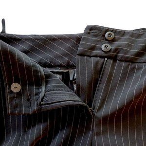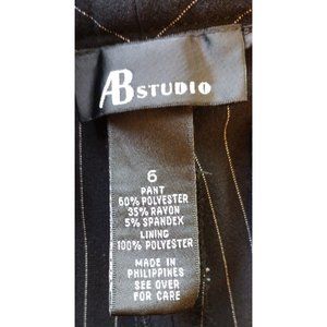AB Studios Black Pinstripe Dress Pants Women's Size 6. Very nice. No flaws found. Rear pockets are faux. Wide leg.