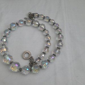 Gorgeous AB crystal necklace. Stunning. Silvertone closure. Wedding. Prom. Party.