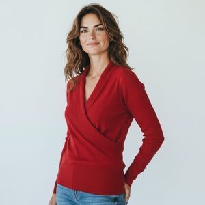 AB studio solid red v neck half sleeve sweater blouse stretchy light weight M