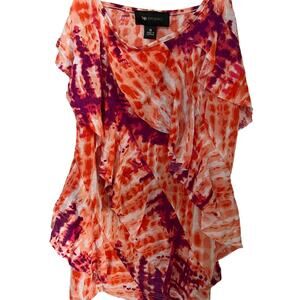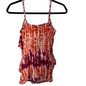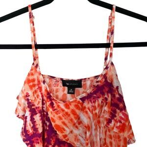 AB studio top women’s size medium orange purple ruffle adjustable strap VTG Y2K