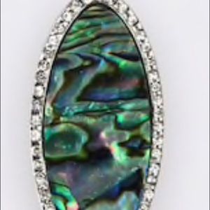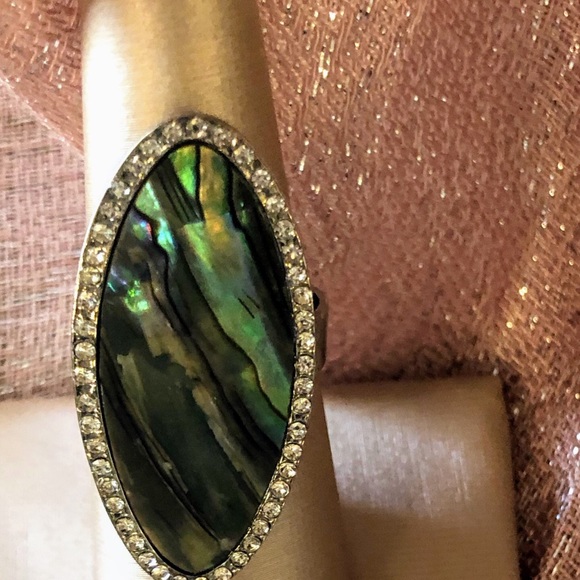 Abalone stone with rhinestones. Silver tone. Expandable band. Brand New.
