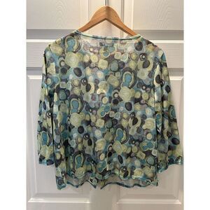 ABBIE MAGS Women’s Twin Set Cardigan & Tank Geometric Green Blue Gray Large