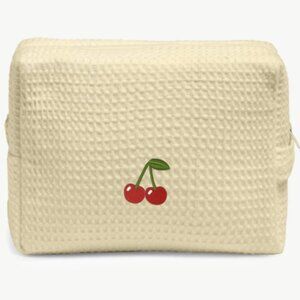 NWT!! ABBODE SIGNATURE WAFFLE POUCH IN BUTTER YELLOW WITH EMBROIDERED CHERRIES