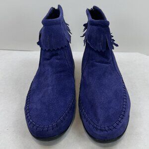 ABCDEFG Womens Purple Suede Leather Upper Fringe Moccasin Ankle Booties Size 8.5 W