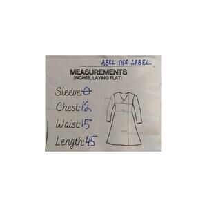 Measurements (from photo card, laying flat): Chest 12 in; Waist 15 in; Length 45 in