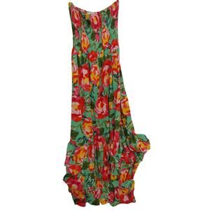 ABEL THE LABEL Dress Womens Small Green Floral Smocked Strapless Maxi Tiered