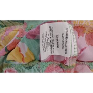 Color/Pattern: Green base with vibrant pink, red, and yellow floral print