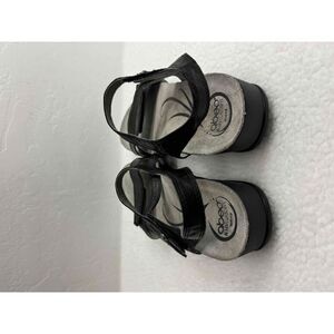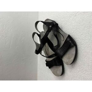 ABEO BIO Quartz Black Leather Ankle Strap Wedge Sandals Womens SZ 10N