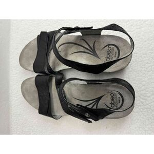 ABEO B.I.O.system Quartz Black Leather Ankle Strap Wedge Sandals Womens Size 10N