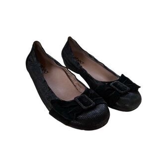 ABEO B.I.O.System Tabitha Embossed Sparkly Leather Suede Bow Flat Black Sz 7.5M