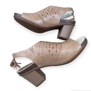 ABEO Berrie Perforated Leather Peep Toe Slingback Heel Sandals 9 Taupe