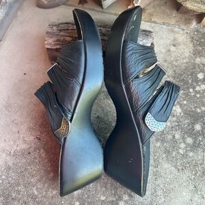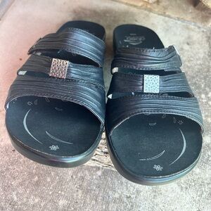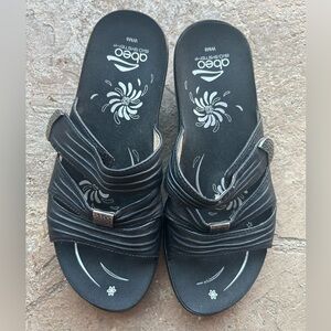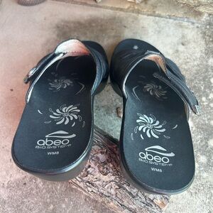 ABEO Bio System Darci black wedge leather comfort Slip-On sandal Sz-8. O