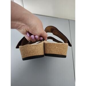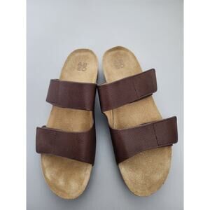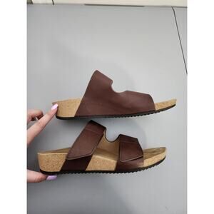 ABEO Gabie Brown Leather Wedge Open Toe Slide Sandals Women's Size 10N