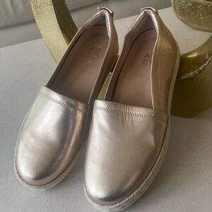 ABEO Isle Gold Metallic Leather Slip-on Walking Shoe Jute Wrap Sole Normcore